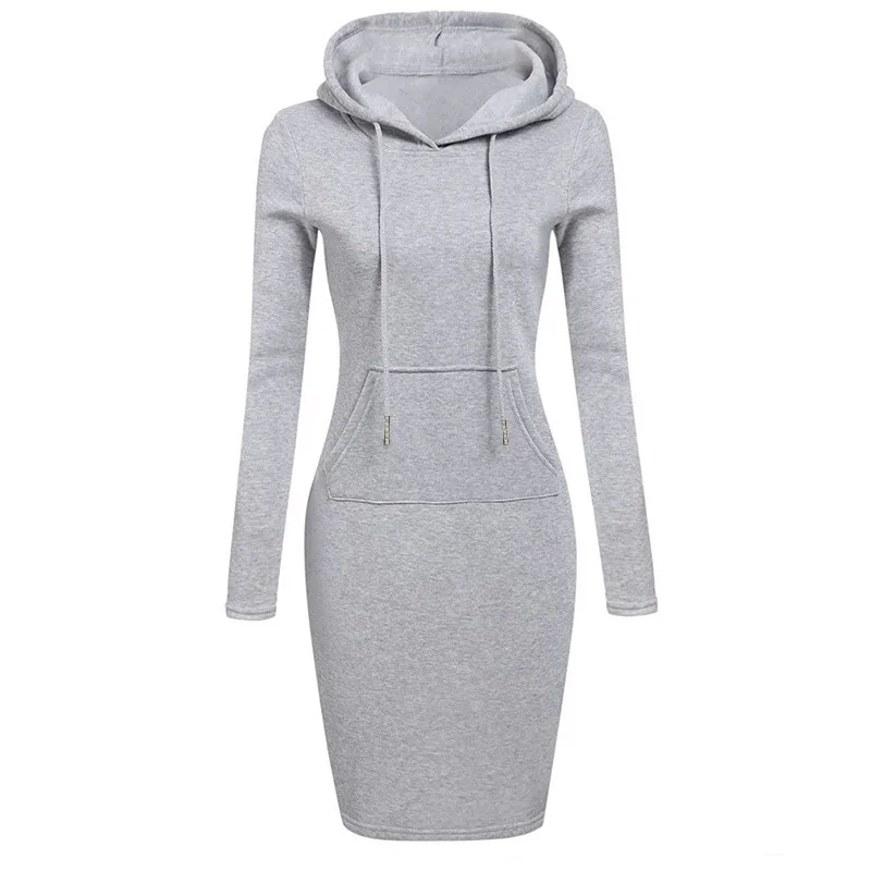 1.Fashion knee-length dress with hooded sweatshirt design combining comfort and fashion for daily wear.